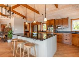 Coastal Dream Home Designed for the Serious Boating Enthusiast! This exceptional property boasts over 300 feet of direct deep-water frontage, complete with a private wharf and floating dockperfect for multiple watercraft and offering seamless access to the open sea. Custom designed by architect Robert Chipman, this 3,200 sq ft residence has been meticulously maintained since its construction in 2006. The open-concept main floor is ideal for entertaining, featuring a striking whitewashed pine ceiling with oversized beams, a beautiful shiplap fireplace, and expansive windows that frame breathtaking ocean views. A brand-new deck with glass railings ensures uninterrupted sightlines from every angle. The chefs kitchen includes a large granite-topped island, walk-in pantry, and extensive cabinetry. The main floor also hosts a serene primary suite with private walkout to the deckwired for a hot tuband a combined laundry/powder room. Upstairs, a charming loft with opening skylights makes a perfect office or reading nook. The lower level features two spacious bedrooms, a full bathroom, utility room, storage room, and a large family room already plumbed for a second kitchen. An attached 22 x 45 garage includes a half bath, with a games room and massive storage space above. Outside, the beautifully landscaped grounds showcase rock walls, mature shrubs, fruit trees, and a full high-bush blueberry orchard. Outbuildings include a 45 x 45 commercial-grade steel building with woodshop loft, half bath, and its own electrical entrance, a garden shed housing the diesel generator (piped underground to the main home), and a chicken coop with a fenced enclosure. This is more than just a homeits an unmatched coastal lifestyle. (id:39336)