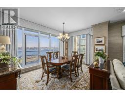 Welcome to Suite 1105 ,the Aquavista, at Kings Wharf, where refined waterfront living meets everyday comfort. Perfectly positioned at the waters edge, this exceptional residence offers an elevated lifestyle without compromise. The expansive, house-sized great room is filled with natural light and uninterrupted harbour views, creating a calm and inviting atmosphere where ships glide by and evenings are enjoyed by the warmth of the gas fireplace. Designed for both entertaining and relaxed living, the chef-inspired kitchen features an oversized island, premium appliances, ample storage, and recent upgrades that enhance both style and functionality. The living space extends seamlessly outdoors to two private harbour-view patiosone west-facing for spectacular sunsets, and one east-facing off the primary suite, ideal for morning coffee and peaceful waterfront moments. The primary suite is a true retreat, showcasing two walls of windows, direct patio access, and a spa-like ensuite complete with a Bain Ultra air tub and steam shower. A thoughtfully separated guest wing ensures privacy, while a dedicated office, generous laundry room, and excellent storage make daily living effortless. Integrated sound, gas hookups, and meticulously maintained systems further highlight the attention to detail throughout. This is waterfront condo living at its finestsophisticated, serene, and highly livable. A home where the harbour sets the rhythm of the day, ferry horns replace city noise, and life unfolds with intention at the waters edge. (id:39336)