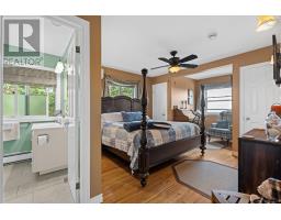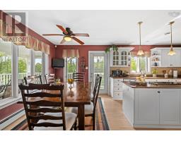 Breathtaking and elevated vistas with spectacular sunrises over the sparkling waters of Mahone Bay. This stately home is warm and inviting with generous spaces designed for both privacy and for gatherings. Nestled on a hilltop, three levels of living space capture incredible views from this Cape Cod home. So many opportunities are within reach here - keep it as a cherished family estate, offset your costs and rent the lower in-law suite or run it as a Bed & Breakfast. The great room impresses with custom details like the 2-storey vaulted ceilings with beautiful crown moldings, wood burning fireplace, and tall windows that bring in vast ocean and island views. From here step outside to a wrap-around veranda the perfect spot to take in the elevated views and fresh ocean air. Complete privacy can be enjoyed by everyone with four spacious bedrooms, each complimented by full ensuite bathrooms. There is also an open space kitchen with a dining area and separate formal dining room, providing plenty of versatile space. The lower level is home to a completely separate in-law suite, with a well appointed kitchen and full bathroom (both newly renovated) and separate entrance out to a covered patio, and hot tub with a deck facing the water. The paver stone driveway, landscaped grassy lawns and well-kept perennials surrounding the property enhance the curb appeal and charm. There is no need to own waterfront here with Graves Island just a short stroll away where a public boat launch, many beaches and swimming areas, extensive seaside walking trails and plenty of nature awaits. Ample exterior storage is available with the detached garage and shed, both with charming board & batten wood siding. Located a stones throw from Graves Island Provincial Park, 3 minutes to the Village of Chester for all amenities and an easy 40 minute drive to Halifax. (id:39336)
