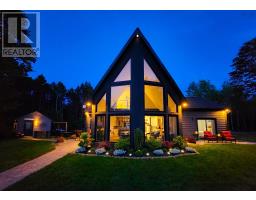 When one thinks about the most perfect lakefront home you really hope you can find a gentle sloping sand beach and protected cove and west facing views to enjoy those magical sunset views. This property provides you all of the above and much more. A custom designed three bedroom home with a breathtaking cathedral ceiling in the living room with large windows that frames perhaps one of the best lakefront views anywhere. A large kitchen with separate pantry and dining space allows one to entertain family and friends with that view ever present. A laundry room and full three piece bathroom and two additional bedrooms one with walkout complete the main floor living space. As one traverses the custom designed floating metal staircase you arrive at the Spa like Primary Bedroom Suite complete with soaker tub and separate ensuite bath with tiled shower and large walk in closet. A large detached wired garage provides ample storage for a boat or trailer and the lakehouse off the patio makes a great space for the outside barbeques. This really is a fantastic opportunity to own a turn key home on Big Mushamush Lake facing west into the sun for the perfect days and nights at the lake. (id:39336)