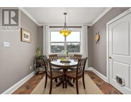 Rarely does a residence of this scale and presence come to market in the heart of Wolfville, welcome to an exceptional penthouse offering over 2,545 sq. ft. of refined, single-level living, perfectly positioned alongside tranquil Pond View Park and just a short stroll to the cafés, shops, downtown energy, and historic Acadia University. Designed for both comfort and entertaining, this beautifully maintained 3-bedroom, 3-bathroom home, including two ensuites, blends the ease of condo living with the feel of a detached home. Soaring 9-foot ceilings, rich cherry hardwood floors, and elegant crown mouldings set the tone, while expansive windows fill the space with natural light. The open-concept living and dining areas flow seamlessly into a thoughtfully designed kitchen featuring new countertops, a generous island, breakfast nook, and two walk-in pantries, ideal for everyday living and hosting alike. Step outside to your impressive 500 sq. ft. private deck, accessed from both the living room and primary suite, overlooking Pond View Park where lush gardens and an elevated view creates a true sanctuary. The primary retreat offers a walk-in closet, spa-inspired ensuite, and direct outdoor access, while two additional oversized bedrooms, one with its own ensuite, provide exceptional flexibility for family, guests, a home office or home gym. Year-round comfort is delivered through an efficient ducted heat pump, complemented by in-unit laundry, elevator access, a private utility space, and a deeded, detached single-car garage with power. Step outside to your impressive 500 sq. ft. private deck, accessed from both the living room and primary suite and overlooking Pond View Park, where lush gardens and an elevated view create a true sanctuary. Penthouse living of this size and caliber is exceptionally rare in Wolfville. It offers a refined, low-maintenance lifestyle in one of Nova Scotias most vibrant and sought-after communities, a home that truly stands apart. (id:39336)