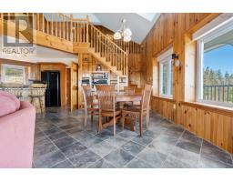 Spectacular lake view retreat with panoramic Bras d'Or Lake views. This extraordinary 4-bedroom, 3.5-bathroom custom residence is set on 178 acres of woodland. This 3,331 sq. ft. home offers unparalleled craftsmanship and breathtaking views of the world-famous Bras d'Or Lake. Built with state-of-the-art Insulated Concrete Form (ICF) construction, this residence delivers superior energy efficiency, soundproofing, and structural integrity. The striking exterior showcases meticulously hand-laid granite and sandstone complemented by stylish stacking brick. Every detail has been thoughtfully curated to create a home of exceptional quality and aesthetic appeal. The main level boasts an open-concept living area with cathedral ceilings and a magnificent stone fireplace centrepiece. The architectural design features windows positioned to frame the breathtaking lake views from multiple angles, while patio doors lead to a panoramic balcony. Throughout the home, the windows are equipped with high-quality built-in exterior room darkening blinds, providing light control and privacy when desired. The upper level features a loft overlooking the main living space, plus a spacious primary bedroom and versatile additional room. The fully finished walkout basement includes a recreation room with wood stove, beautifully crafted stone wall and hearth, and patio access. Premium features include in-floor heating (basement and main level), heated 26'×32' attached garage with 16' and 9' doors and Generac propane generator for uninterrupted power. Set on diverse woodland, this property offers the perfect balance of privacy and accessibility while capturing unobstructed lake views. This amazing residence must be viewed in person to truly appreciate the exceptional craftsmanship throughout. (id:39336)